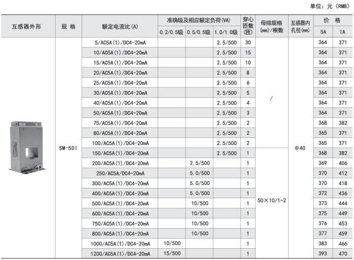 技術(shù)要求:額定電流比500A/5A/20mA;準確級0.5/0.2級;穿心匝數(shù)1匝;內(nèi)孔徑φ40mm。