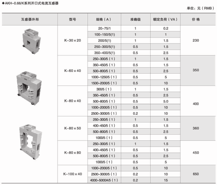 AKH-0.66K系列開口式電流互感器安裝方便,無須拆一次母線,亦可帶電操作,不影響客戶正常用電,可與繼電器保護(hù)、測(cè)量以及計(jì)量裝置配套使用。