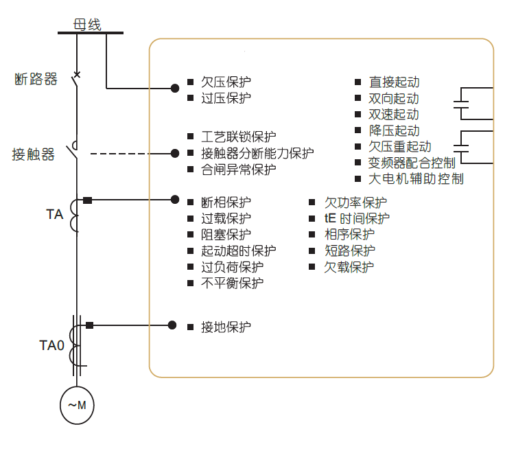 該系列低壓電動(dòng)機(jī)保護(hù)器,具有過(guò)載、斷相、不平衡、欠載、接地/漏電、堵轉(zhuǎn)等保護(hù)功能??膳c接觸器、電動(dòng)機(jī)起動(dòng)器等電器元件構(gòu)成電動(dòng)機(jī)控制保護(hù)單元,具有遠(yuǎn)程自動(dòng)控制、現(xiàn)場(chǎng)直接控制、面板指示、信號(hào)報(bào)警、現(xiàn)場(chǎng)總線通信等功能。