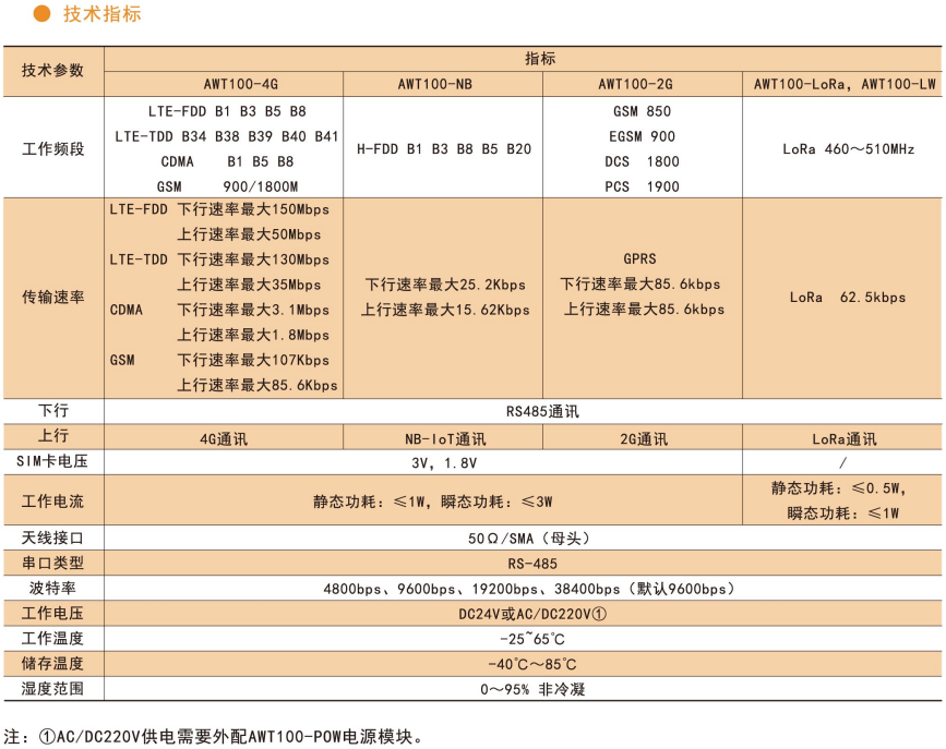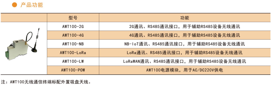 注:①AWT100-2G/NB/4G無線通信終端能通過安科瑞平臺協(xié)議與安科瑞服務(wù)器通訊。