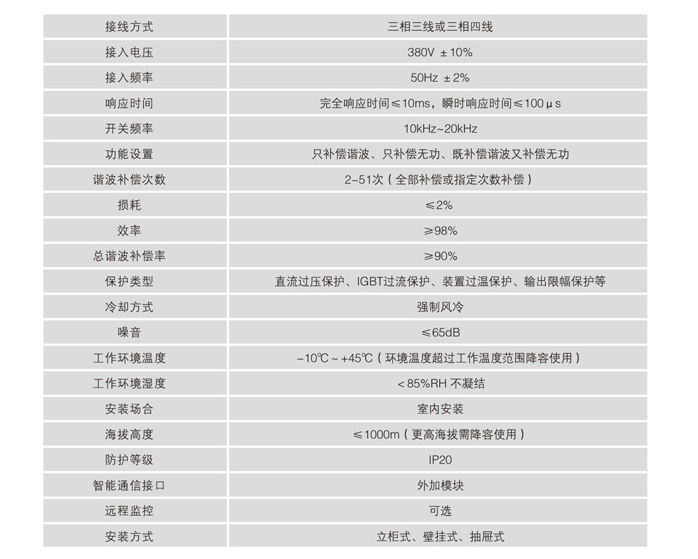 適用于并聯(lián)在含諧波負(fù)載的低壓配電系統(tǒng)中,能夠?qū)討B(tài)變化的諧波電流進(jìn)行快速實時的跟蹤和補(bǔ)償。訂貨范例: