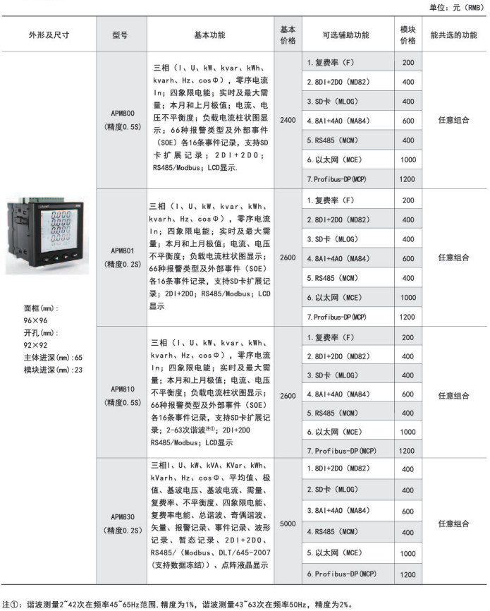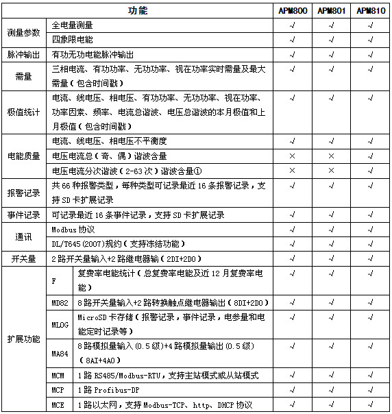 APM系列網(wǎng)絡(luò)電力儀表按IEC標準設(shè)計,具有全電量測量,電能統(tǒng)計,電能質(zhì)量分析及網(wǎng)絡(luò)通訊等功能,主要用于對電網(wǎng)供電質(zhì)量的綜合監(jiān)控診斷及電能管理。該系列儀表采用了模塊化設(shè)計,當(dāng)客戶需要增加開關(guān)量輸入輸出,模擬量輸入輸出,SD卡記錄,以太網(wǎng)通訊時,只需在背部插入對應(yīng)模塊即可。