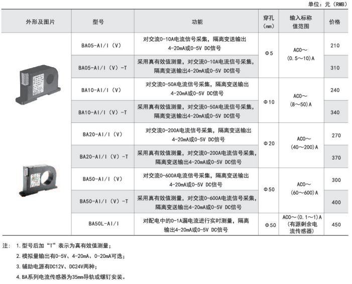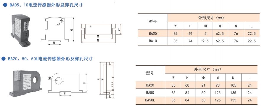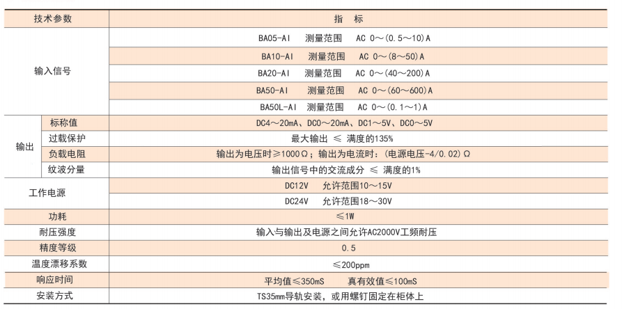 BA系列產(chǎn)品應(yīng)用電磁感應(yīng)原理,對(duì)電網(wǎng)中的交流電流進(jìn)行實(shí)時(shí)測量,將其隔離變換為標(biāo)準(zhǔn)的直流信號(hào)輸出。