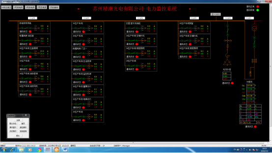 系統(tǒng)依據(jù)客戶實際需求進行設計,并實現(xiàn)了一次主接線圖界面顯示;電參量遙測及電參量越限報警;事件記錄;系統(tǒng)運行異常監(jiān)測;故障報警及操作記錄;電能報表查詢與打??;系統(tǒng)負荷實時、歷史曲線,用戶權限管理等主要功能。