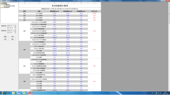 電能報表是對用電量的管理以報表形式呈現(xiàn),該報表可以實現(xiàn)系統(tǒng)運行期間的任意時間段內的月抄表,日抄表,小時抄表等功能,且可以Excel形式導出或打印。界面如圖5所示。