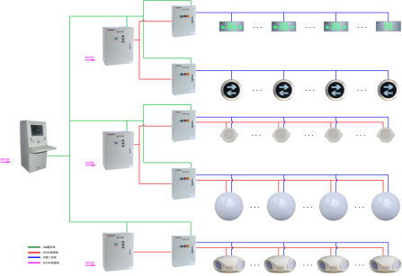 本系統(tǒng)采用消防二總線將具有通信功能的設(shè)備和燈具相互連接起來,當監(jiān)控系統(tǒng)中的設(shè)備及燈具發(fā)生短路、斷路等故障時,控制器能發(fā)出故障報警信號,指示故障報警地點并保存故障報警信息,地保障了電氣安全的可靠性。