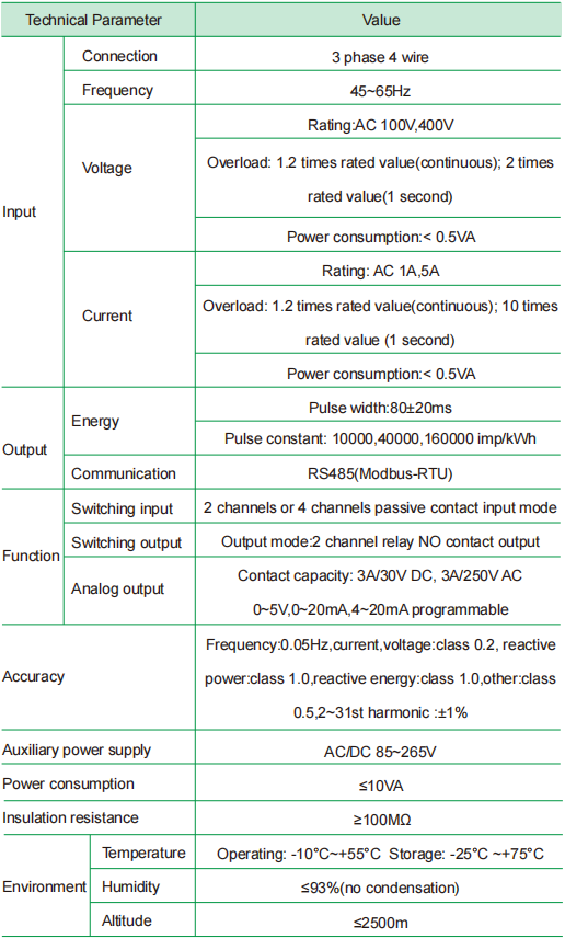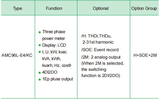 AMC series meters integrate measurement of full electric parameters, such as single-phase or three-phase current, voltage, active power, reactive power, apparent power, frequency, power factor. It also has functions of energy statistics, event record,harmonic measurement and network communications.