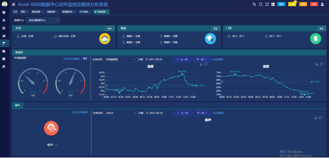 ??6.3.5環(huán)境監(jiān)測:環(huán)境監(jiān)測頁面在線監(jiān)測數(shù)據(jù)中心溫濕度、開關(guān)門、水浸、煙霧、噪聲、氣體濃度狀態(tài)。曲線圖直觀明了,同時(shí)支持歷史數(shù)據(jù)查詢。