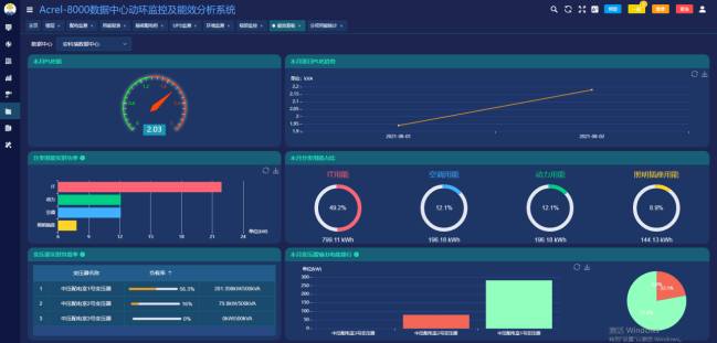 ??1)通過對數(shù)據(jù)中心能效分類并排名,通過圖表形式展示,直觀地展示數(shù)據(jù)中心各項(xiàng)用能情況,以及當(dāng)月PUE日曲線圖。