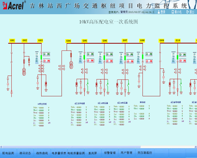 系統(tǒng)依據(jù)客戶實(shí)際需求進(jìn)行設(shè)計(jì),并實(shí)現(xiàn)了一次主接線圖界面顯示;電參量遙測及電參量越限報(bào)警;事件記錄;系統(tǒng)運(yùn)行異常監(jiān)測;故障報(bào)警及操作記錄;報(bào)表查詢與打??;系統(tǒng)負(fù)荷實(shí)時(shí)、歷史曲線,用戶權(quán)限管理等主要功能。