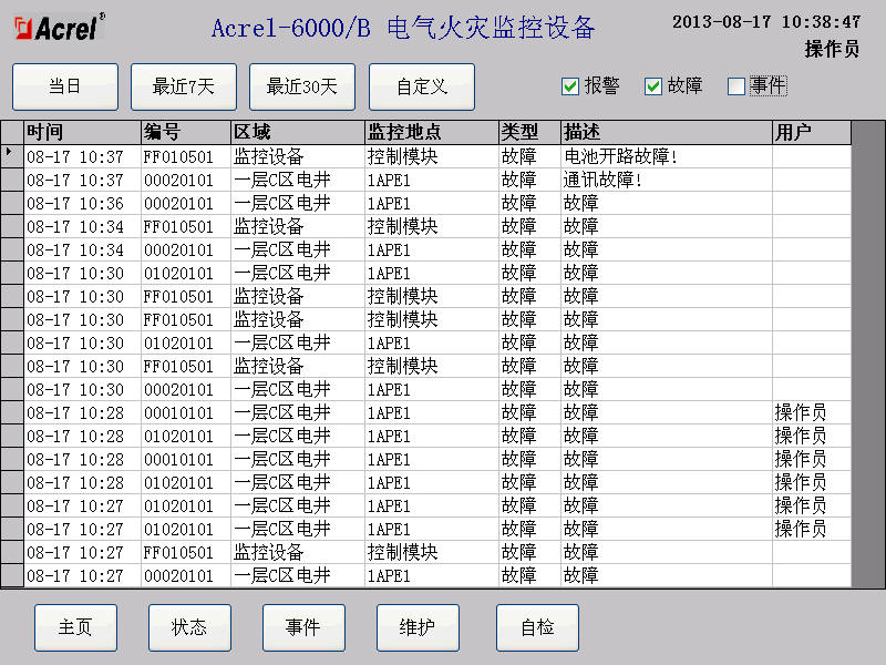 3)事件記錄查詢界面
