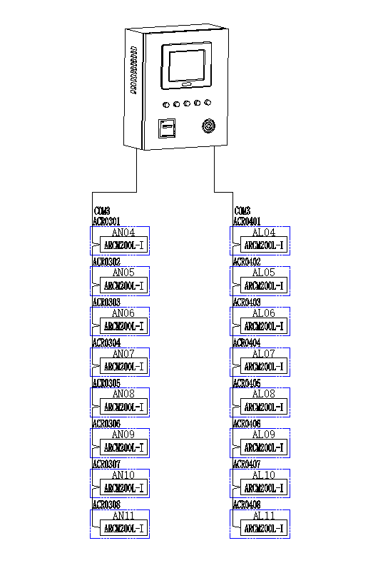 龍港新港花園配電工程寫(xiě)字樓共有16只ARCM200L-I電氣火災(zāi)探測(cè)器,分布于1#樓各樓層以及配電室內(nèi)?,F(xiàn)場(chǎng)電氣火災(zāi)探測(cè)器采用總線方式,通過(guò)兩條485總線接入Acrel-6000壁掛式電氣火災(zāi)監(jiān)控系統(tǒng)。本系統(tǒng)具有安裝運(yùn)輸方便、性價(jià)比高、維護(hù)方便等優(yōu)點(diǎn)。