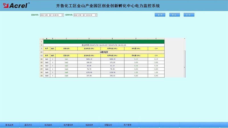 報(bào)表具有自由設(shè)置查詢時(shí)間實(shí)現(xiàn)日、月、年的電能統(tǒng)計(jì),數(shù)據(jù)導(dǎo)出和報(bào)表打印等功能。