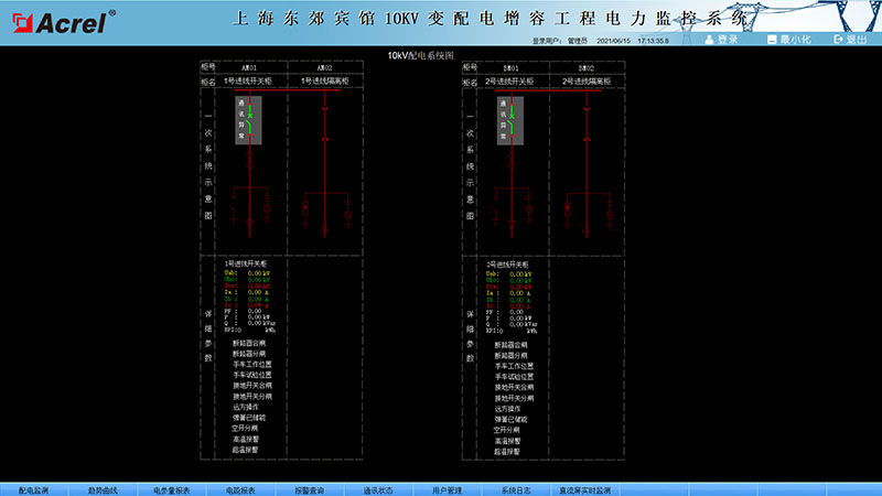 監(jiān)控系統(tǒng)主要實(shí)現(xiàn)對(duì)上海東郊賓館10KV變變配電進(jìn)行用電安全進(jìn)行監(jiān)控與管理。