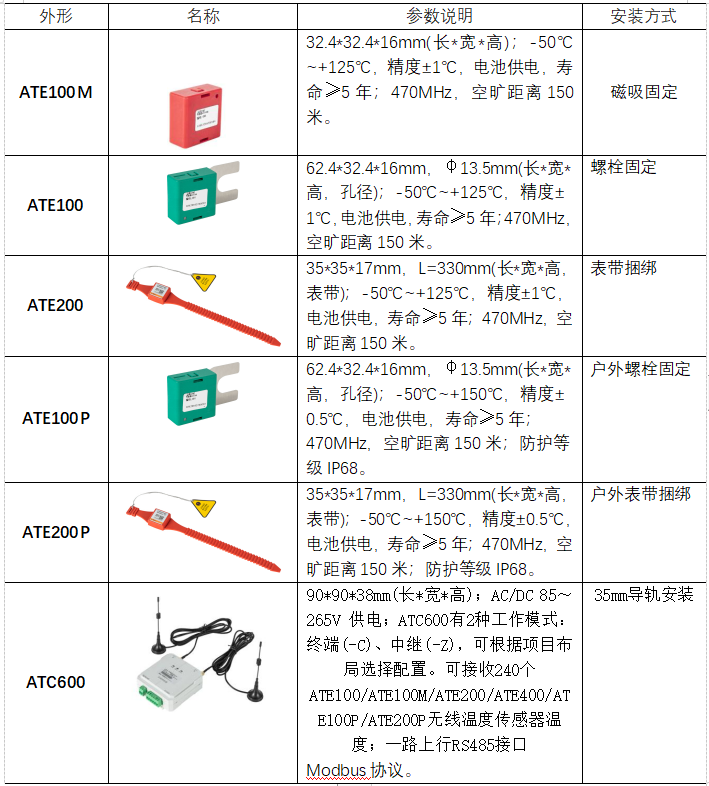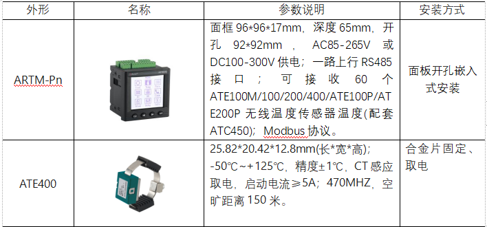 根據(jù)上述要求,故此選擇安科瑞的無線測溫產(chǎn)品如下表。
