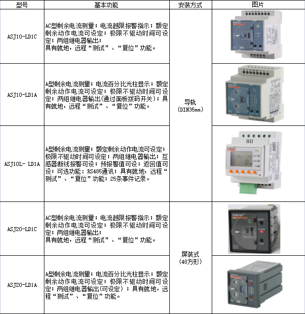 三、安科瑞ASJ系列剩余電流繼電器介紹