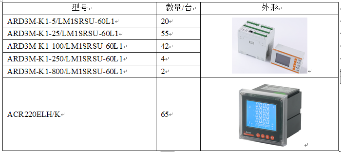 ??根據上述要求,選擇安科瑞ARD3M系列智能電動機保護器。此外,針對配電室低壓各回路配置ACR220ELH電力儀表,具體配置表如下: