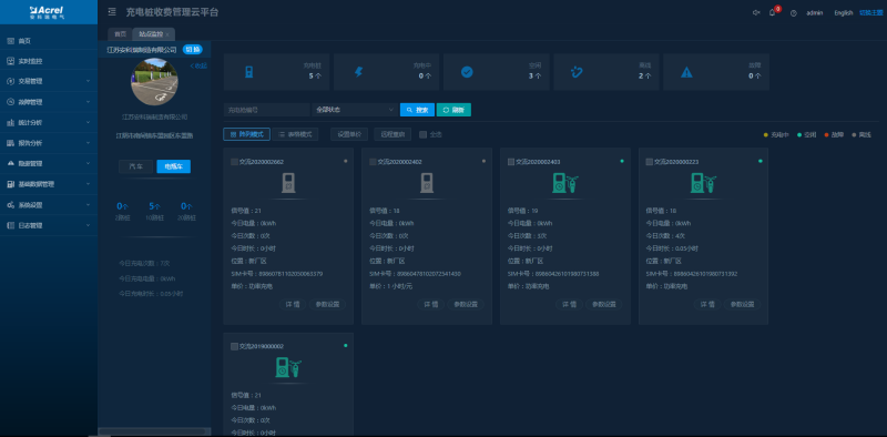 ??展示當(dāng)前充電站各充電樁的狀態(tài)及實時充電數(shù)據(jù),統(tǒng)計站點和各充電樁今日充電數(shù)據(jù),支持充電單價、設(shè)備重啟、充電/報警/保護(hù)等參數(shù)的遠(yuǎn)程批量下發(fā),其中對于遠(yuǎn)程參數(shù)設(shè)置進(jìn)行了權(quán)限控制,未授權(quán)的用戶不可操作,確?,F(xiàn)場設(shè)備正常運行。