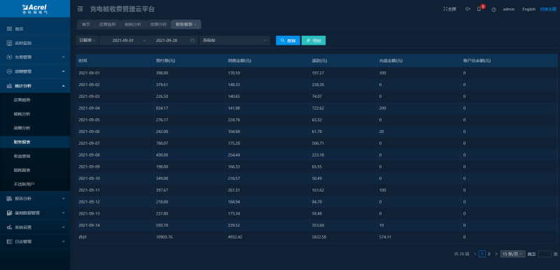 ??可按日、月、年查看各個充電樁的用電量,可導(dǎo)出成excel表格。