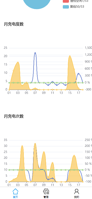 ??可按日、月、季度、年查看充電次數(shù)、充電時長、充電金額,同時顯示對應(yīng)的曲線圖。