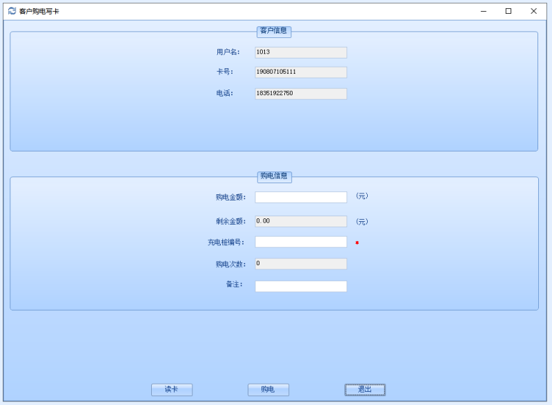 ??充電樁可以通過刷卡進(jìn)行支付和啟動充電,使用C/S程序?qū)ι漕l卡進(jìn)行開卡、充值、退卡等操作。