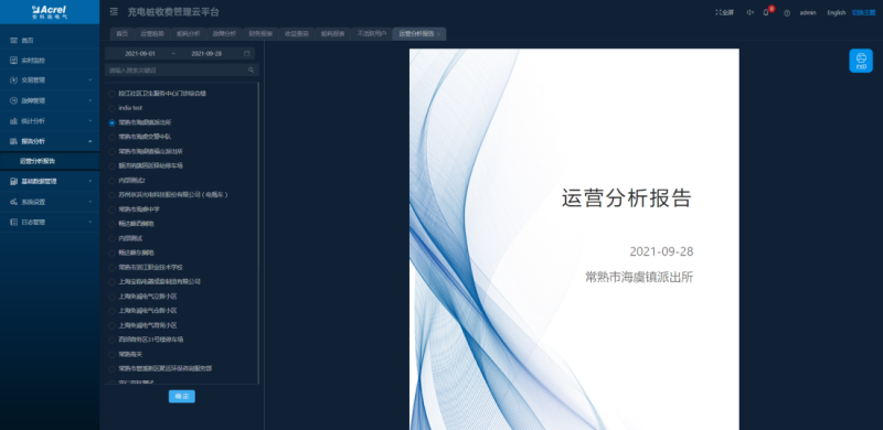 ??可根據(jù)選擇時間和站點查看站點的運營狀況,并以報告的形式展示,支持導(dǎo)出成PDF文件和打印。