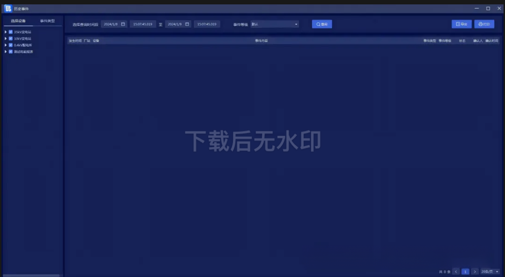 點擊歷史事件圖標,切換到歷史事件查詢界面,查看歷史數(shù)據(jù)庫中記錄的所有系統(tǒng)事件。