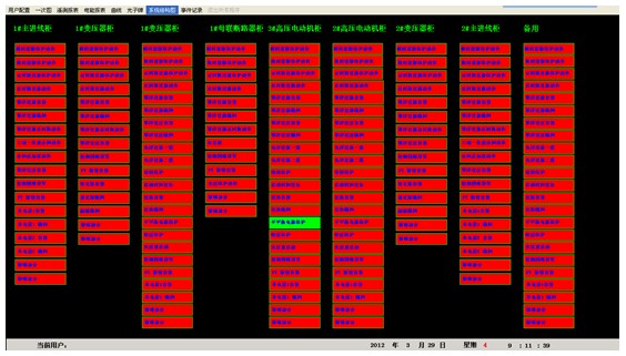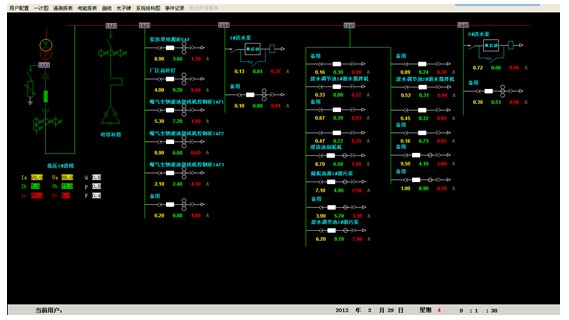 系統(tǒng)提供簡單、易用、良好的用戶使用界面。采用全中文界面,配電系統(tǒng)電氣一次主接線圖,顯示設(shè)備狀態(tài)及實時運行參數(shù);畫面實時動態(tài)刷新;模擬量顯示;開關(guān)量顯示;報警記錄顯示等。