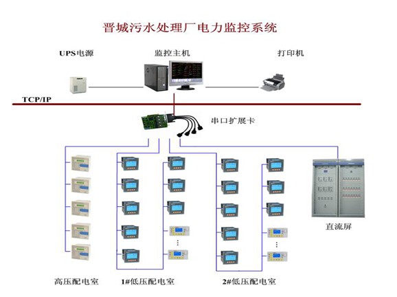 安科瑞電氣股份有限公司承接晉城污水處理廠遠程自動抄表系統(tǒng)項目的設(shè)計與實施。采用Acrel-3000型電力監(jiān)控系統(tǒng), 本監(jiān)控系統(tǒng)的監(jiān)控范圍:高壓配電室、低壓配電室1#、低壓配電室2#的電力儀表。其中高壓配電室微機保護為9臺,低壓配電室1#、2#有上海安科瑞電氣股份有限公司儀表共126臺。