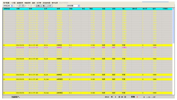在配電系統(tǒng)發(fā)生運行故障時,會及時發(fā)出聲光報警提示用戶及時響應故障回路,同時自動記錄事件發(fā)生的時間、地點、回路名稱、值班人員等信息,以便用戶查詢,追憶故障原因。
