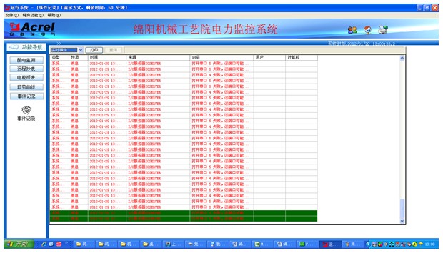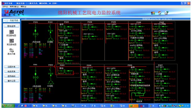 四川機(jī)械設(shè)計(jì)制造研究所主站層位于一層總值班室內(nèi),電力監(jiān)控系統(tǒng)的站控管理層設(shè)備具體包括:Acrel-2000電力監(jiān)控系統(tǒng)工控機(jī)一套、打印機(jī)、UPS。負(fù)責(zé)將通訊管理層上傳的數(shù)據(jù)解包,進(jìn)行集中管理和分析,執(zhí)行相關(guān)操作、以及整個(gè)變配電系統(tǒng)的整體監(jiān)控。網(wǎng)絡(luò)通訊層設(shè)備的選型主要從兩個(gè)方面考慮,一個(gè)是用戶需求,功能實(shí)現(xiàn)方面;二是根據(jù)現(xiàn)場情況,綜合項(xiàng)目的費(fèi)用來考慮的。針對這個(gè)項(xiàng)目來說,用戶的需求常規(guī),軟件功能實(shí)現(xiàn)起來相對容易;現(xiàn)場情況比較簡單,監(jiān)控點(diǎn)數(shù)比較少,所以網(wǎng)絡(luò)通訊層設(shè)備采用性價(jià)比高的4口帶隔離的通訊管理機(jī),既能滿足用戶要求,又能減低項(xiàng)目成本?,F(xiàn)場設(shè)備層的選型,在本項(xiàng)目中主要從性價(jià)比考慮。兩路進(jìn)線選擇的是安科瑞生產(chǎn)的ACR220E/K網(wǎng)絡(luò)電力儀表,它能測量所有的常用電力參數(shù),如三相電流、電壓,有功、無功功率,電度等。出線回路選擇的是安科瑞生產(chǎn)的PZ80-E4/K,它可以測量所有的常用電力參數(shù),如三相電流、電壓,有功、無功功率,電度等。