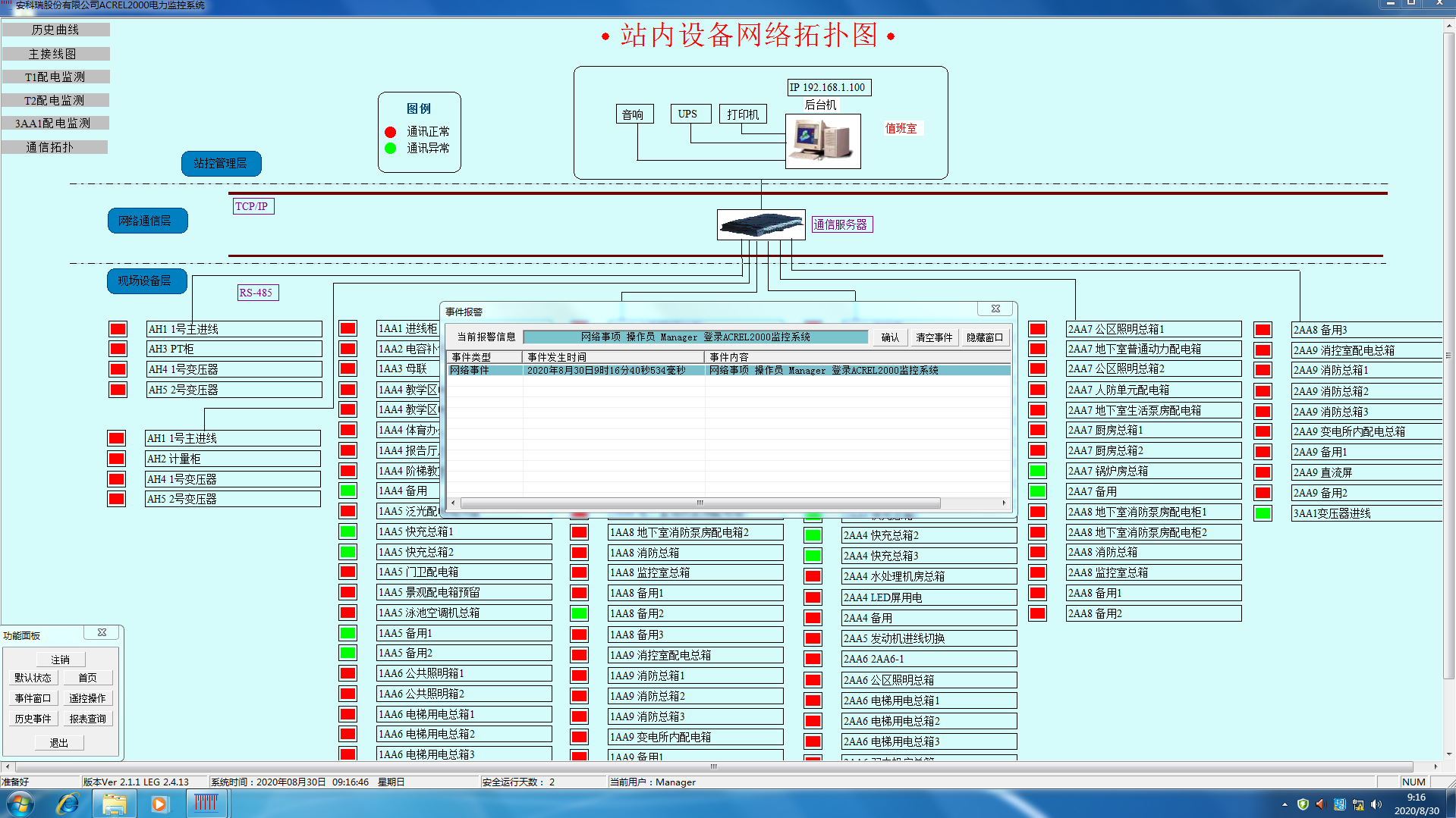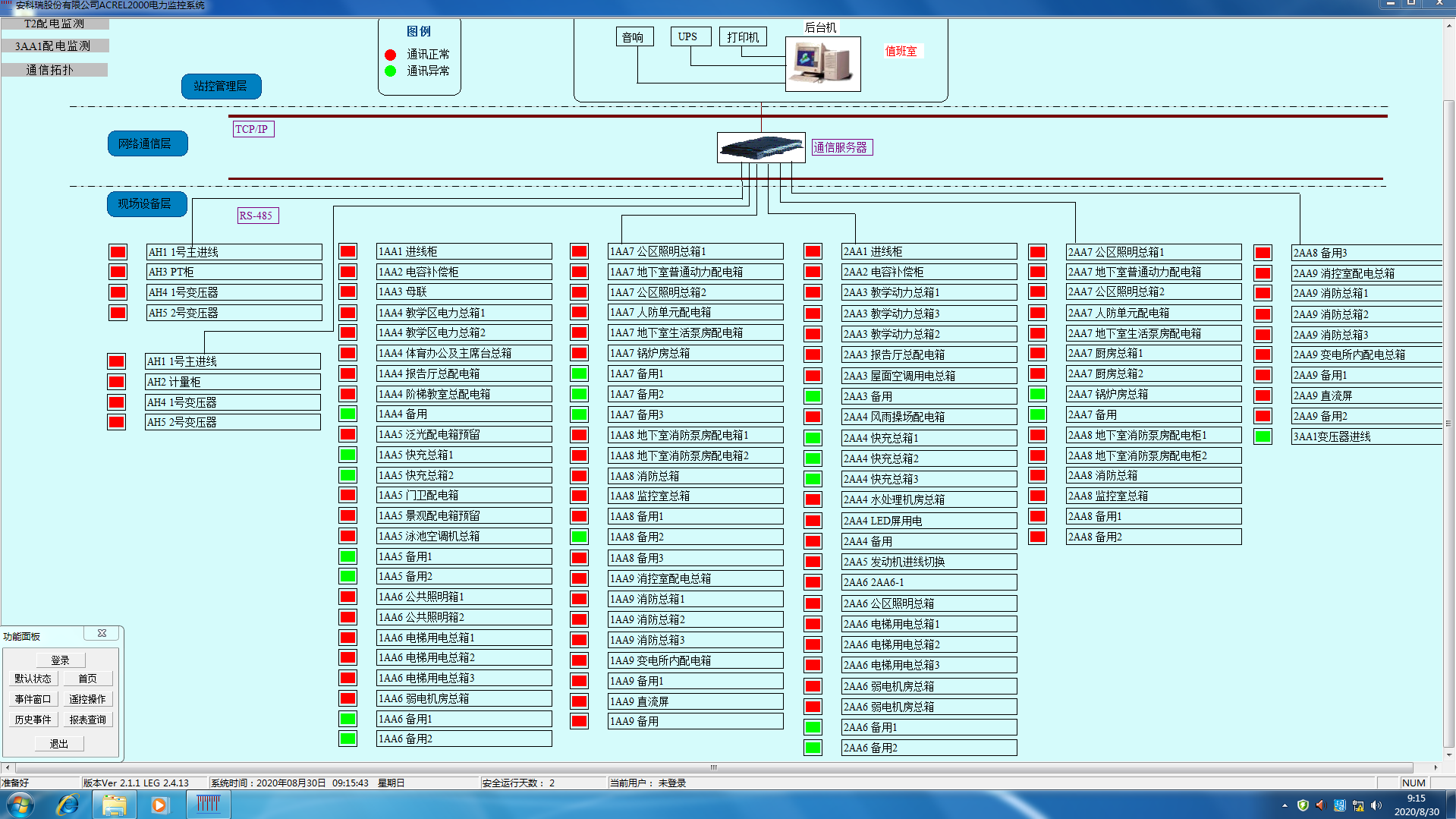 在當(dāng)今配電設(shè)施的應(yīng)用中,項(xiàng)目的配電安全性至關(guān)重要,本文介紹的Acrel-2000電力監(jiān)控系統(tǒng)在西安小學(xué)變電所的應(yīng)用,可以實(shí)現(xiàn)對(duì)配電室供配電回路用電的實(shí)時(shí)監(jiān)控,不僅能顯示回路用電狀況,還具有網(wǎng)絡(luò)通訊功能,可以與通訊管理機(jī)、計(jì)算機(jī)等組成電力監(jiān)控系統(tǒng)。系統(tǒng)實(shí)現(xiàn)對(duì)采集數(shù)據(jù)的分析、處理,實(shí)時(shí)顯示配電室內(nèi)各配電回路的運(yùn)行狀態(tài),對(duì)負(fù)載越限具有彈出報(bào)警對(duì)話框,并生成各種電能報(bào)表、分析曲線、圖形等,便于電能的遠(yuǎn)程抄表以及分析、研究,該系統(tǒng)運(yùn)行安全、可靠、穩(wěn)定,為機(jī)關(guān)變電所項(xiàng)目解決用電問(wèn)題提供了真實(shí)可靠的依據(jù),取得了較好的企業(yè)效益。