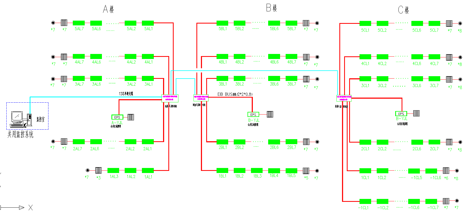 學(xué)校照明系統(tǒng)采用Acrel-Bus智能照明系統(tǒng),由于系統(tǒng)采用KNX分布式總線結(jié)構(gòu)。布線簡單靈活,各模塊可獨(dú)立工作互不影響,系統(tǒng)可靠性更高。模塊工作在直流30V安全電壓下,用戶操作更加安全。升級(jí)或更改系統(tǒng)功能時(shí),無需關(guān)閉整個(gè)系統(tǒng),只需更改設(shè)備參數(shù)即可。系統(tǒng)報(bào)警定位功能,實(shí)時(shí)監(jiān)測并上傳集中控制端,方便設(shè)備人員準(zhǔn)確定位并及時(shí)報(bào)修。下面通過一些項(xiàng)目圖紙?jiān)敿?xì)介紹該系統(tǒng)的設(shè)計(jì)流程。