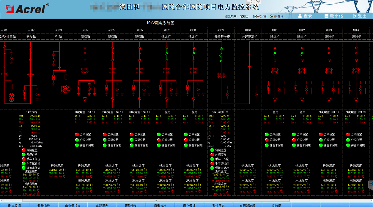 在當今配電設施的應用中,工業(yè)項目的配電安全性至關重要,本文介紹的Acrel-2000電力監(jiān)控系統(tǒng)在某集團與某醫(yī)院合作新建醫(yī)院項目的應用,可以實現(xiàn)對配電間出線供配電回路用電的實時監(jiān)控,不僅能顯示回路用電狀況,還具有網(wǎng)絡通訊功能,可以與串口服務器、計算機等組成電力監(jiān)控系統(tǒng)。系統(tǒng)實現(xiàn)對采集數(shù)據(jù)的分析、處理,實時顯示配電間內各配電回路的運行狀態(tài),對負載越限具有彈出報警對話框、語音提示,并生成各種電能報表、分析曲線、圖形等,便于電能的遠程抄表以及分析、研究,該系統(tǒng)運行安全、可靠、穩(wěn)定,為工業(yè)項目解決用電問題提供了安全可靠的依據(jù),取得了較好的企業(yè)效益。