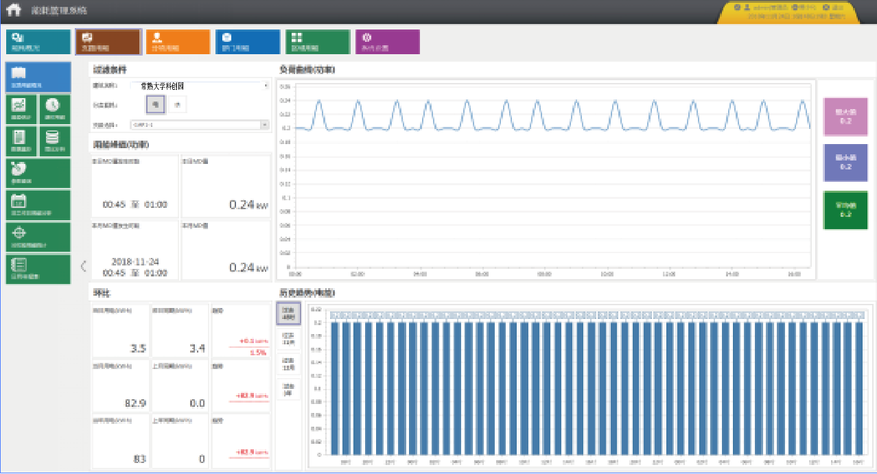 系統(tǒng)可以統(tǒng)計(jì)各支路某段時(shí)間內(nèi)逐日、逐周、逐月、逐季、逐年用能。系統(tǒng)可查看各支路用能趨勢(shì),可根據(jù)已有的日期或者自定義時(shí)間進(jìn)行查詢,并可以將支路用能顯示合計(jì),以圖表形式顯示。