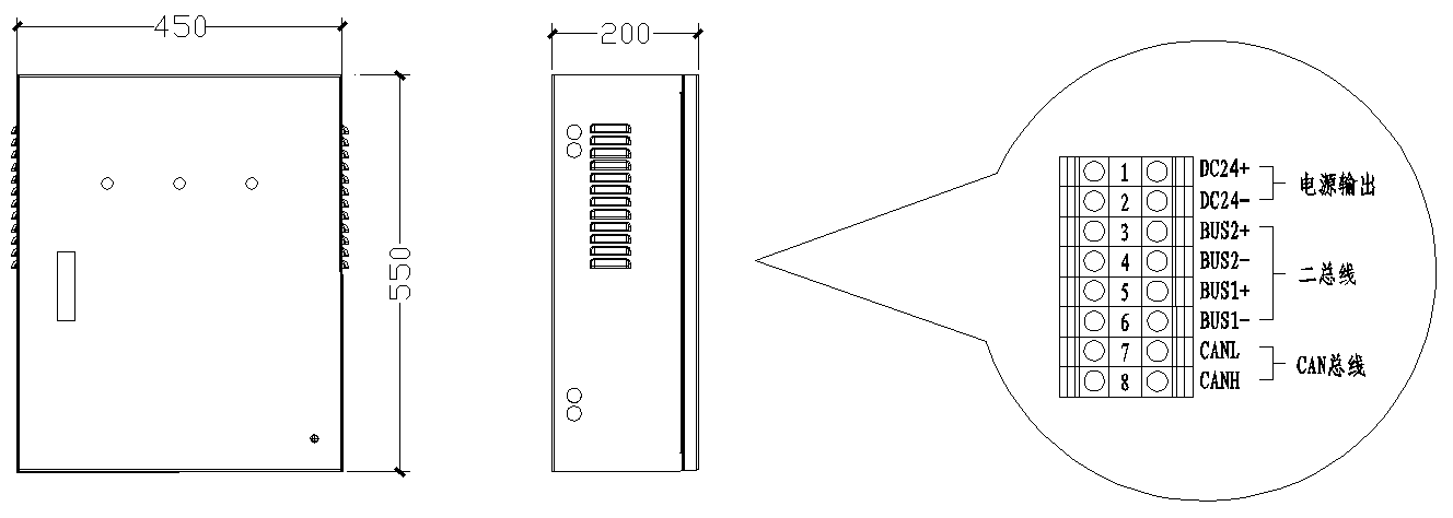 二總線回路容量2*128=256點(diǎn) CAN總線回路容量2*16=32個(gè)區(qū)域分機(jī) |