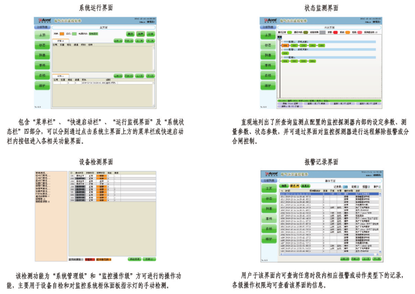 Acrel-6000電氣火災(zāi)監(jiān)控系統(tǒng)是用于接收剩余電流式電氣火災(zāi)監(jiān)控探測(cè)器等現(xiàn)場(chǎng)設(shè)備信號(hào),以實(shí)現(xiàn)對(duì)被保護(hù)電氣線路的報(bào)警、監(jiān)視、控制、管理的運(yùn)行于計(jì)算機(jī)的工業(yè)級(jí)硬件/軟件系統(tǒng)。本系統(tǒng)適用于智能樓宇、高層公寓、賓館、飯店、商廈、工礦企業(yè)、國(guó)家消防單位以及石油化工、文教衛(wèi)生、金融、電信等領(lǐng)域,對(duì)分散在建筑內(nèi)的探測(cè)器進(jìn)行遙測(cè)、遙調(diào)、遙控、遙信,方便實(shí)現(xiàn)監(jiān)控與管理。