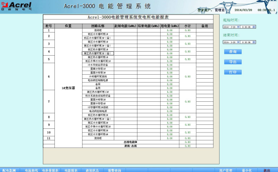 隨著社會的發(fā)展及電力的廣泛應(yīng)用,電能管理系統(tǒng)已成為全國各地工程項目、工業(yè)企業(yè)等大面積多變電所用戶的必然選擇,本文介紹的Acrel-3000電能管理系統(tǒng)在云南省昭通市北部新區(qū)醫(yī)院的應(yīng)用,可以實現(xiàn)對變電所高低壓配電回路用電的實時監(jiān)控與電能管理,不僅能顯示回路用電狀況,還具有網(wǎng)絡(luò)通訊功能,可以與串口服務(wù)器、計算機(jī)等組成電能管理系統(tǒng)。系統(tǒng)實現(xiàn)對采集數(shù)據(jù)的分析、處理,實時顯示變電所內(nèi)各配電回路的運行狀態(tài),對分合閘、負(fù)載越限具有彈出報警對話框及語音提示,并生成各種電能報表、分析曲線、圖形等,便于電能的遠(yuǎn)程抄表以及分析、研究。該系統(tǒng)運行安全、可靠、穩(wěn)定,為變電所用戶解決用電問題提供了真實可靠的依據(jù),取得了較好的經(jīng)濟(jì)效益。