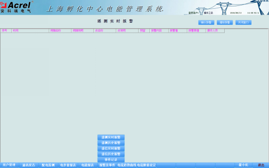 本系統(tǒng)還針對主要電參量的遙測量(包括進(jìn)線回路的電流、電壓、頻率、功率因素和出線回路的電流越線報警)。也能點(diǎn)擊打開歷史報警調(diào)出歷史報警界面。界面如圖所示。