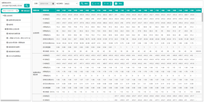 4.3 提供多種類(lèi)型的查詢(xún)報(bào)表,可以查詢(xún)各配電回路的各類(lèi)電力參數(shù)(電壓、電流、功率、頻率、諧波、三相不平衡度等),系統(tǒng)可以對(duì)某電力參數(shù)按照天、月進(jìn)行值統(tǒng)計(jì)(大小值、平均值)。