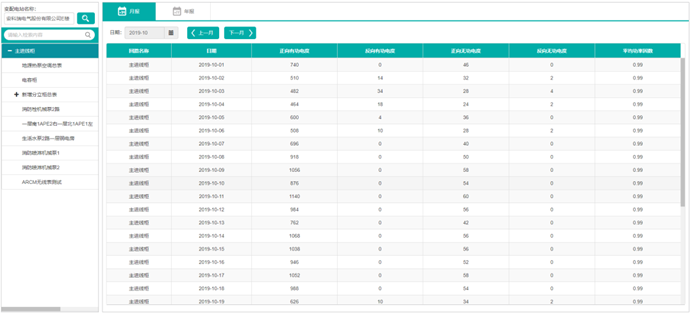 (3)統(tǒng)計(jì)四象限電能并計(jì)算每天、每月的平均功率因數(shù)。
