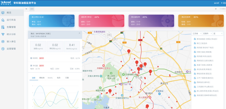 為了彌補(bǔ)現(xiàn)存餐飲行業(yè)在煙油監(jiān)測(cè)上的漏洞,同時(shí)便利監(jiān)管部門的監(jiān)察,安科瑞油煙監(jiān)測(cè)云平臺(tái)應(yīng)運(yùn)而生。油煙監(jiān)測(cè)模塊通過2G/4G與云端平臺(tái)進(jìn)行通信和數(shù)據(jù)交互,系統(tǒng)能夠?qū)ζ髽I(yè)餐飲設(shè)備的開機(jī)狀態(tài)、運(yùn)行狀態(tài)進(jìn)行監(jiān)控;實(shí)現(xiàn)開機(jī)率監(jiān)測(cè),凈化效率監(jiān)測(cè),設(shè)施停運(yùn)告警,待清洗告警,異常告警等功能;對(duì)采集數(shù)據(jù)進(jìn)行統(tǒng)計(jì)分析、排名等統(tǒng)計(jì)功能;較之傳統(tǒng)的靜電監(jiān)測(cè)方案,更具安全性和實(shí)效性。