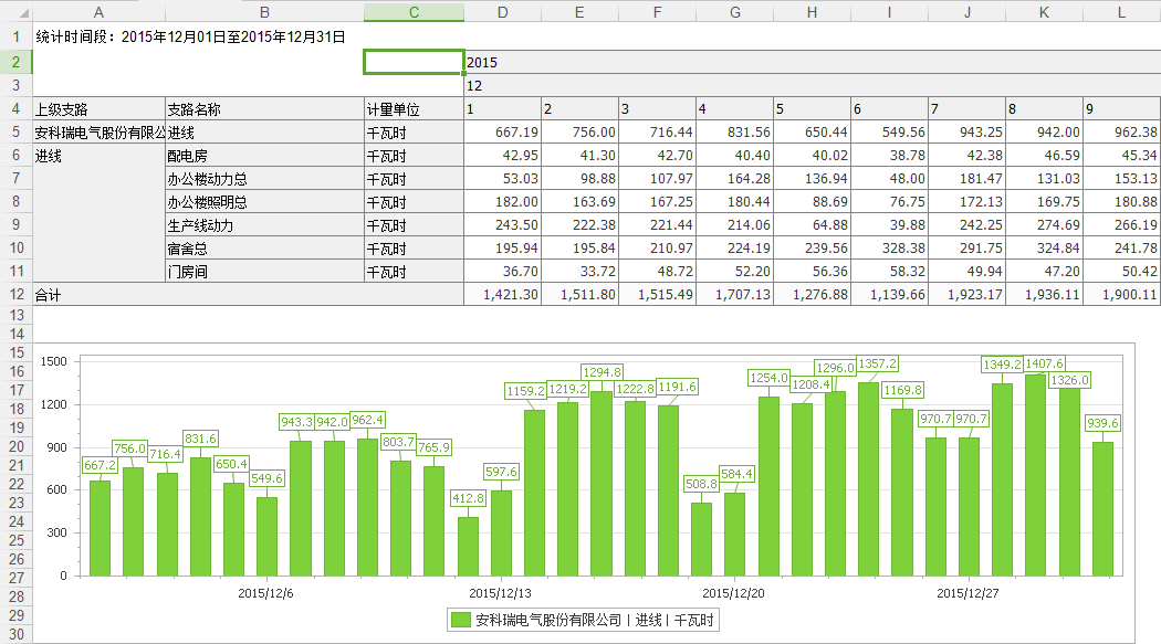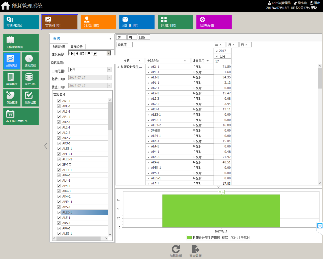 ??Acrel-5000能耗管理系統(tǒng)可以統(tǒng)計各支路某段時間內(nèi)逐日、逐周、逐月、逐季、逐年用能。選擇需要查詢的支路,點擊‘加載數(shù)據(jù)’查看各支路用能趨勢,可根據(jù)已有的日期或者自定義時間進(jìn)行查詢,并可以將支路用能顯示合計,以圖表形式顯示。
