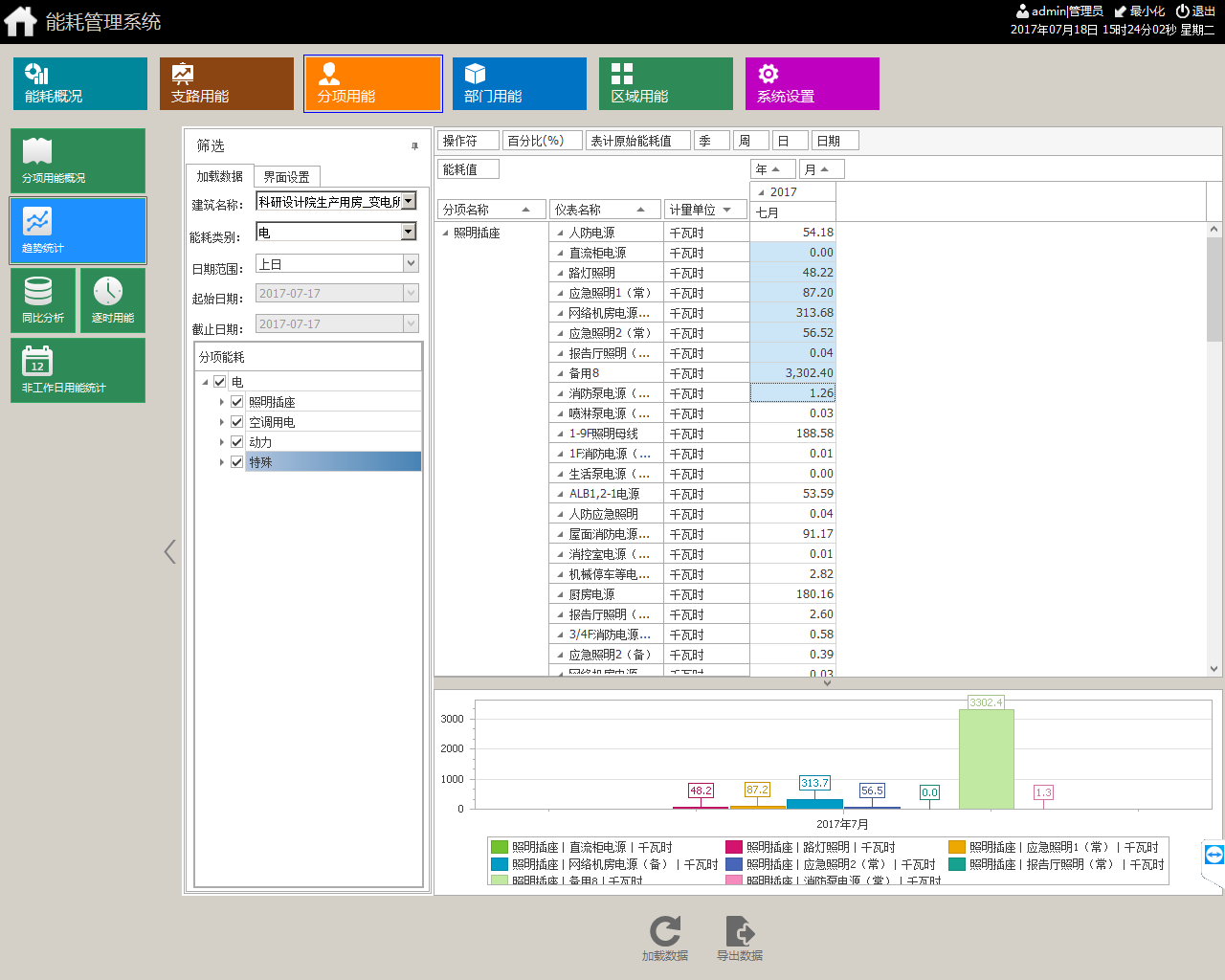 ??Acrel-5000能耗管理系統(tǒng)可以統(tǒng)計各分項某段時間內(nèi)逐日、逐周、逐月、逐季、逐年用能。選擇需要查詢的支路,‘加載數(shù)據(jù)’查看分項中各支路用能趨勢,可根據(jù)已有的日期或者自定義時間進(jìn)行查詢。這里的支路都是通過基礎(chǔ)數(shù)據(jù)中分類分項的配置而來,默認(rèn)查詢的是當(dāng)月的能耗。