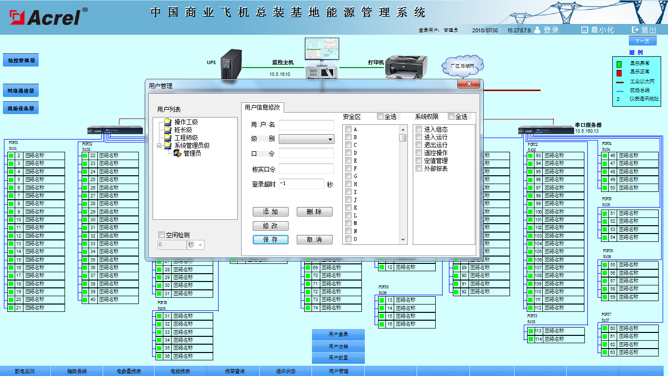 摘要:用戶對(duì)自身用能的管理意識(shí)提升,促使用戶側(cè)電力配電系統(tǒng)在商業(yè)、工業(yè)以及民用區(qū)域的普及。系統(tǒng)針對(duì)用戶側(cè)主要的用能節(jié)點(diǎn),設(shè)計(jì)安裝智能儀表,再通過(guò)后臺(tái)系統(tǒng)來(lái)實(shí)時(shí)監(jiān)控各用能回路的工作狀態(tài)、用電量等數(shù)據(jù)的采集。通過(guò)實(shí)時(shí)監(jiān)控用能以及相關(guān)電力參數(shù)、提升用能安全、可靠及維護(hù)效率、降低維護(hù)的人工成本、實(shí)現(xiàn)了配電系統(tǒng)監(jiān)控的智能管理。同時(shí)通過(guò)用能的實(shí)時(shí)監(jiān)測(cè),數(shù)據(jù)的采集及存儲(chǔ),明確供配電系統(tǒng)的運(yùn)行狀態(tài),為用戶節(jié)約電力維護(hù)成本提供數(shù)據(jù)依據(jù)。現(xiàn)以中國(guó)商業(yè)飛機(jī)總裝基地項(xiàng)目項(xiàng)目中使用的ACREL-5000能耗管理系統(tǒng)為例。對(duì)用戶側(cè)用能智能化做簡(jiǎn)要介紹。