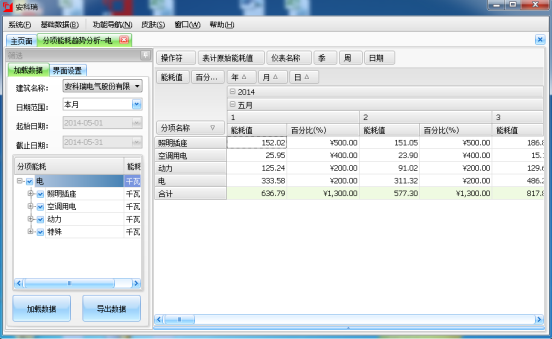 ACREL-5000能耗管理系統(tǒng)對(duì)智能計(jì)量?jī)x表的數(shù)據(jù)采集、存儲(chǔ)、處理,并以圖形、報(bào)表的形式導(dǎo)出,為管理人員提供具體的用電明細(xì)。