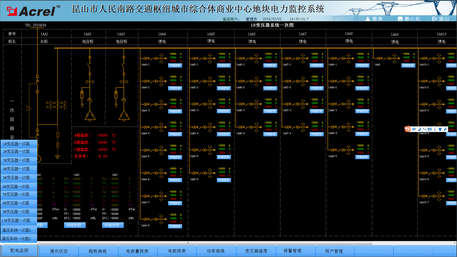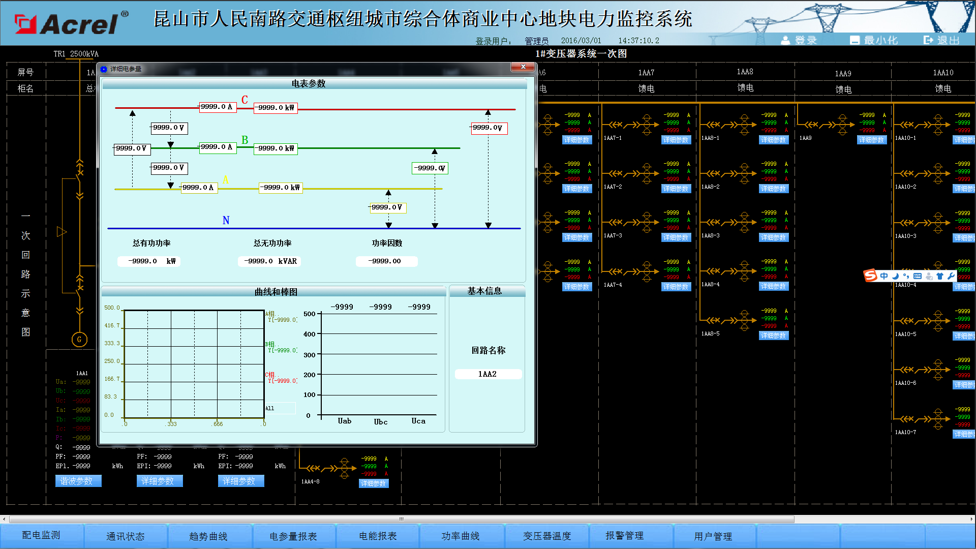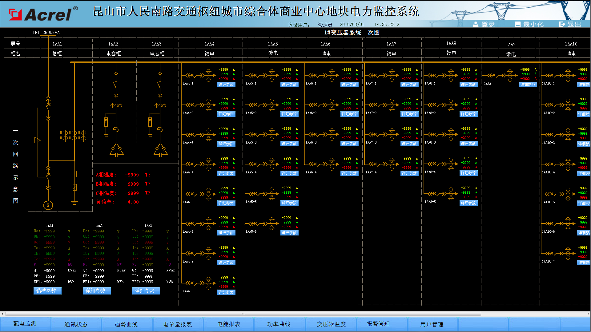 在當(dāng)今配電設(shè)施的應(yīng)用中,變電所的配電安全性至關(guān)重要,本文介紹的安科瑞Acrel-2000電力監(jiān)控系統(tǒng)在昆山市人民南路交通樞紐城市綜合體商業(yè)中心地塊的應(yīng)用,可以實(shí)現(xiàn)對(duì)變電所供配電回路用電的實(shí)時(shí)監(jiān)控,不僅能顯示回路用電狀況,還具有網(wǎng)絡(luò)通訊功能,可以與串口服務(wù)器、計(jì)算機(jī)等組成電力監(jiān)控系統(tǒng)。系統(tǒng)實(shí)現(xiàn)對(duì)采集數(shù)據(jù)的分析、處理,實(shí)時(shí)顯示變電所內(nèi)各配電回路的運(yùn)行狀態(tài),對(duì)分合閘、負(fù)載越限具有彈出報(bào)警對(duì)話(huà)框、語(yǔ)音提示、短信報(bào)警燈,并生成各種電能報(bào)表、分析曲線(xiàn)、圖形等,便于電能的遠(yuǎn)程抄表以及分析、研究,該系統(tǒng)運(yùn)行安全、可靠、穩(wěn)定,為解決用電問(wèn)題提供了真實(shí)可靠的依據(jù)。
