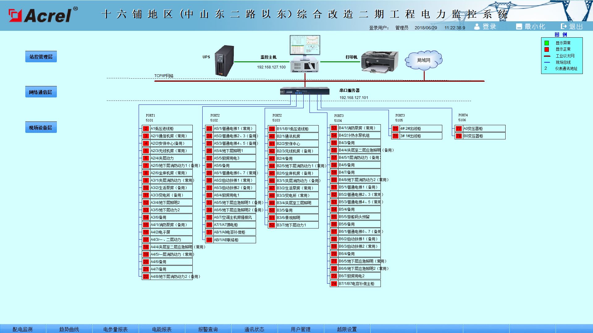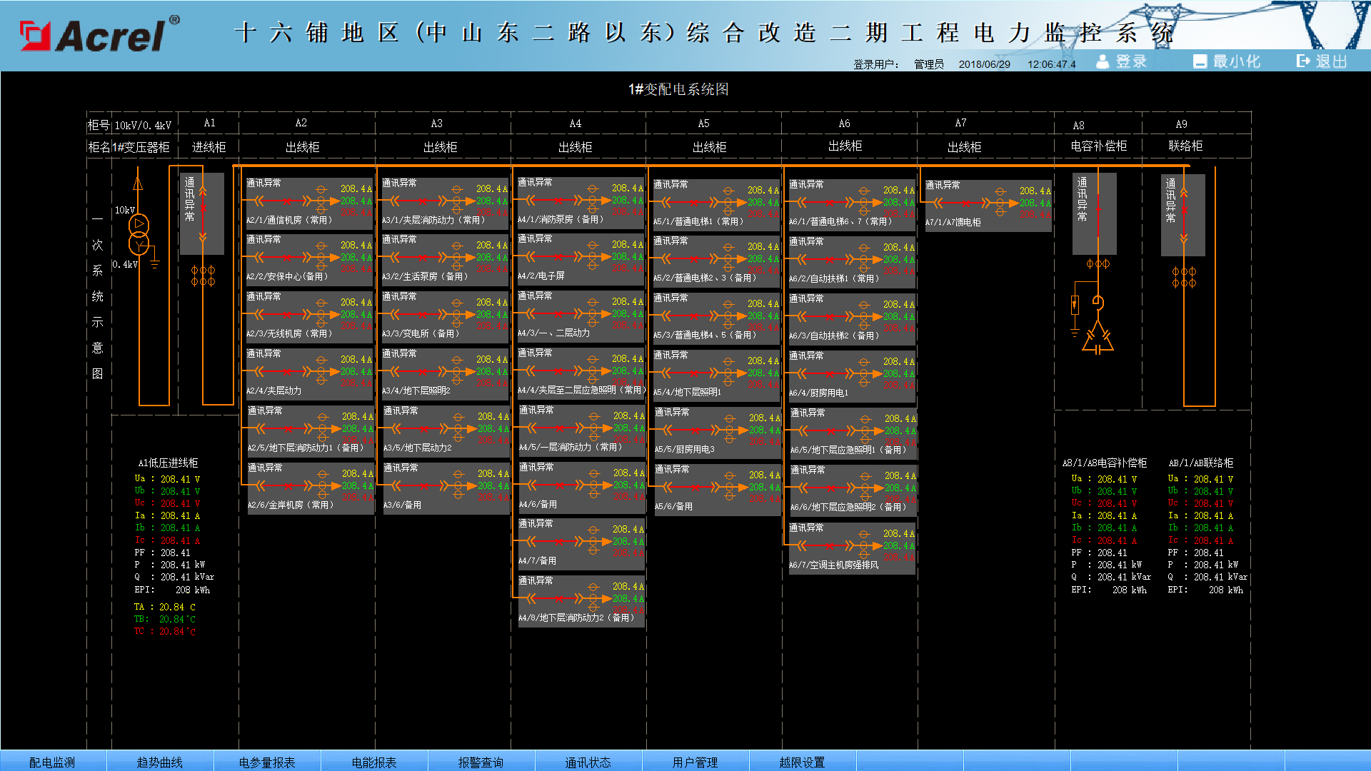 ACREL-2000電力監(jiān)控系統(tǒng)采用全中文界面,操作簡(jiǎn)單方便;運(yùn)行穩(wěn)定可靠的特點(diǎn)。點(diǎn)擊相應(yīng)快捷按鈕即可進(jìn)入相應(yīng)的系統(tǒng)功能模塊;系統(tǒng)具有一次系統(tǒng)圖顯示,模擬圖顯示和網(wǎng)絡(luò)結(jié)構(gòu)圖顯示;系統(tǒng)具有人機(jī)界面友好,顯示數(shù)據(jù)直觀,方便用戶查閱。