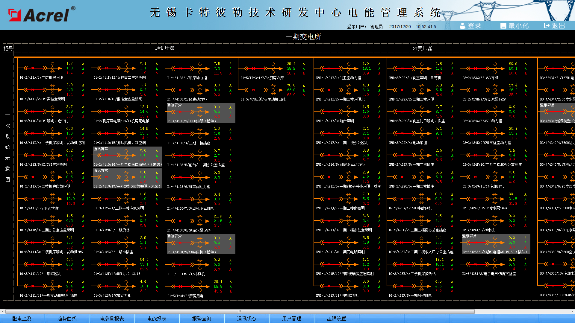 在當(dāng)今配電設(shè)施的應(yīng)用中,大型工廠項(xiàng)目的配電安全性至關(guān)重要,本文介紹的Acrel-3000電能管理系統(tǒng)在無錫卡特彼勒研發(fā)中心項(xiàng)目的應(yīng)用,可以實(shí)現(xiàn)對(duì)配電房進(jìn)出線回路及樓層配電箱供配電回路用電的實(shí)時(shí)監(jiān)控,不僅能顯示回路用電狀況,還具有網(wǎng)絡(luò)通訊功能,可以與串口服務(wù)器、計(jì)算機(jī)等組成電能管理系統(tǒng)。系統(tǒng)實(shí)現(xiàn)對(duì)采集數(shù)據(jù)的分析、處理,實(shí)時(shí)顯示樓層配電箱內(nèi)各配電回路的運(yùn)行狀態(tài),對(duì)負(fù)載越限具有彈出報(bào)警對(duì)話框、語音提示,并生成各種電能報(bào)表、分析曲線、圖形等,便于電能的遠(yuǎn)程抄表以及分析、研究,該系統(tǒng)運(yùn)行安全、可靠、穩(wěn)定,為商業(yè)廣場(chǎng)項(xiàng)目解決用電問題提供了真實(shí)可靠的依據(jù),取得了較好的企業(yè)效益。