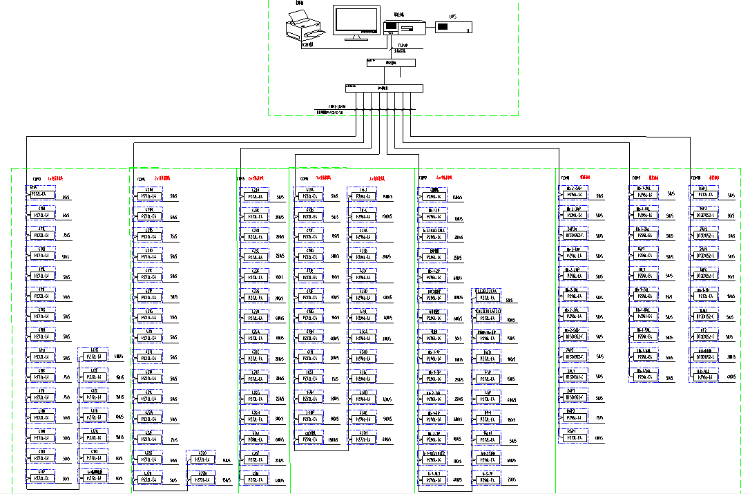 系統(tǒng)通訊結(jié)構(gòu)示意圖,主要顯示系統(tǒng)的組網(wǎng)結(jié)構(gòu),系統(tǒng)采用分層分布式結(jié)構(gòu),同時(shí)監(jiān)測(cè)間隔層設(shè)備的通信狀態(tài)。紅色表示通訊正常,綠色表示通訊故障。下圖為變電所通訊狀態(tài)示意圖。